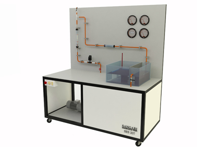 Standul experimental prezinta amplasamente de masura atat verticale cat si orizontale. Debitmetrele sunt alimentate cu apa prin circuit inchis, fiind prevazut cu rezervor si pompa. Pentru determinarea pierderilor de presiune sunt puse la dispozitie 2 manometre cu tub si un manometru de presiune diferentiala. Pentru a se putea verifica precizia debitmetrelor analizate, in circuit este prezent si un debitmetru de referinta.